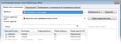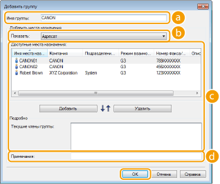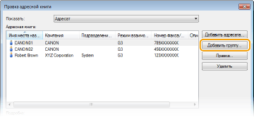 В этом разделе описывается регистрация адресатов в адресной книге для факсов, отправляемых с компьютера. Можно выбрать отдельных адресатов из списка адресатов, зарегистрированных в адресной книге, чтобы создать одного группового адресата (групповой набор). Эта функция используется для отправки данных одновременно нескольким адресатам.