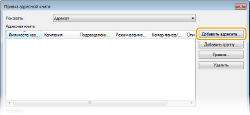 Чтобы изменить или удалить зарегистрированных адресатов, выберите адресата в разделе [Адресная книга] и нажмите [Правка] или [Удалить].
