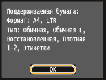 Убедитесь в том, что в аппарат загружена бумага именно того типа и формата, который отображается на экране, и нажмите <OK>.