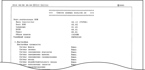 <Список данных пользователя> не включает списки настроек для <Настройки сети> и <Настройки управления системой>, а также часть списка настройки для <Настройки факса>. Для проверки всех элементов настроек, включая <Настройки сети> и <Настройки управления системой>, напечатайте <Список данных администратора системы>.