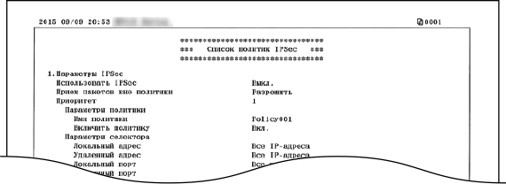 Для проверки списка имен политик и настроек IPSec, зарегистрированных для аппарата, можно напечатать список политик IPSec.