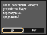 Начнется импорт. По завершении импорта аппарат автоматически перезапускается.