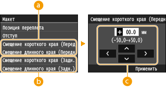 <Смещение короткого края (Передн.)>/<Смещение длинного края (Передн.)>