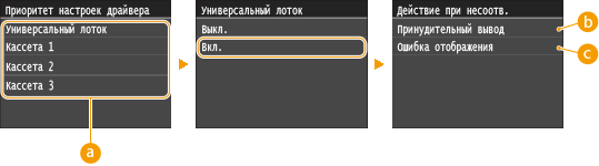 Если настройки в драйвере принтера не соответствуют размеру и типу загруженной бумаги и выбран вариант <Вкл.>, может произойти замятие бумаги или возникнуть ошибка печати.