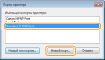 Выберите [Standard TCP/IP Port] в качестве значения параметра [Имеющиеся порты принтера] и нажмите [Новый порт].