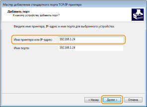 Введите IP-адрес или DNS-имя аппарата и нажмите [Далее].