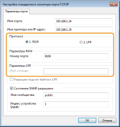 В разделе [Тип протокола] выберите [RAW] или [LPR] и измените [Номер порта].
