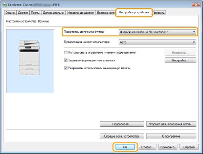 Можно использовать драйвера принтера PCL6, а также драйвер UFR II. Доступные настройки печати отличаются в зависимости от драйвера принтера. Чтобы получить более подробную информацию, щелкните пункт меню [Справка] каждого экрана драйвера принтера.