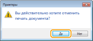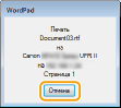 Отмена из приложенияВ некоторых приложениях появляется следующий экран. Печать можно отменить, нажав [Отмена].
