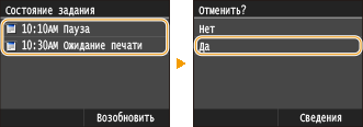 Отмена из удаленного ИППечать можно отменить со страницы [Состояние задания] в удаленном ИП: Проверка состояния документов для печати