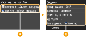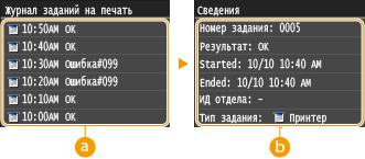 Если для параметра <Отображение журнала заданий> задано значение <Выкл.>, проверка журнала заданий печати невозможна. Отображение журнала заданий