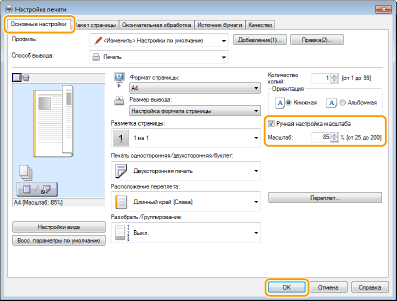 Параметры увеличения/уменьшения в некоторых приложениях приоритетнее, чем те же параметры в драйвере принтера.