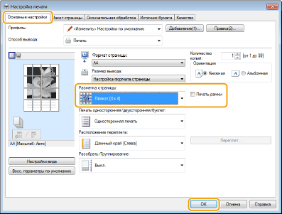 В пункте [Разметка страницы] выберите размеры плаката (например, [Плакат [2 x 2]])
