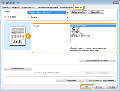 Чтобы указать параметры для каждого выбранного пункта в [Объект], щелкните [Дополнительные настройки]. Дополнительные сведения см. в разделе [Справка] драйвера принтера.