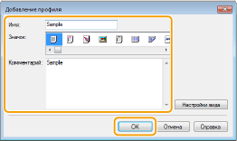 Введите имя профиля в поле [Имя], выберите значок и щелкните [ОК].