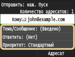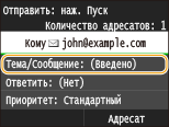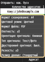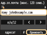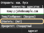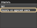 По умолчанию адрес для ответов не задан. Чтобы отображаемый адрес для ответа отличался от адреса аппарата, выберите адрес из адресной книги. Если адресат не занесен в адресную книгу, см. Регистрация в адресной книге.