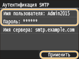 Введите имя пользователя и пароль с помощью цифровых клавиш, затем нажмите <Применить>.