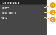Качество копии изображения можно выбрать в зависимости от типа документа, например, документ, содержащий только текст или таблицы и графики, а также фотографии из журналов.