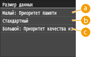 Можно указать степень сжатия файлов при преобразовании отсканированных документов в формат JPEG. <Малый: Приоритет памяти> увеличивает коэффициент сжатия по сравнению с нормальным, чтобы создавать файлы меньшего размера с более низким качеством изображения. С другой стороны <Большой: Приоритет качества изображения> уменьшает коэффициент сжатия по сравнению с нормальным, чтобы создавать файлы большего размера с более высоким качеством изображения.
