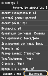 Просмотрите подробные данные настроек, подлежащих регистрации, и коснитесь <Применить>.
