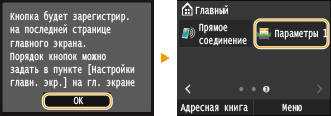При выборе <Да> появляется сообщение. Прочитайте сообщение, а затем коснитесь <OK>. Установленная комбинация настроек будет добавлена на экран Главный как кнопка быстрого вызова.