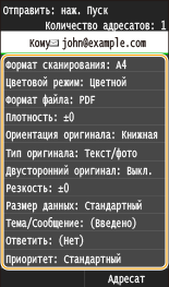 Если вы зарегистрировали место назначения, заданное из адресной книги, и решите удалить запись этого места назначения в адресной книге, место назначения также будет удалено из избранных настроек сканирования.