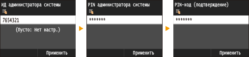 ![]() ИД администратора системы и PIN-код по умолчанию — «7654321». Рекомендуется изменить эту настройку для обеспечения лучшей защиты.