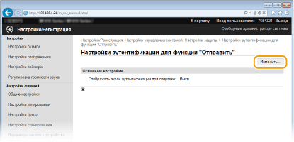 При отправке электронной почты и интернет-факсов не отображается экран аутентификации. Для авторизации на SMTP-сервере используются имя пользователя и пароль, заданные в разделе [Настройки электронной почты / И-факса] Настройка параметров связи электронной почты/интернет-факса.