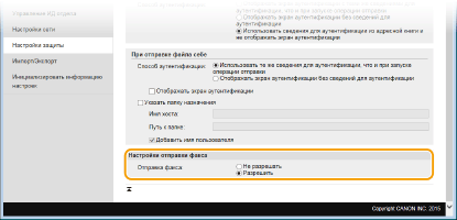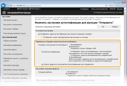 Если для параметра [Отправка файлов] задано значение [Разрешить]