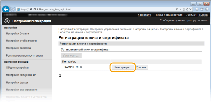 Щелкните [Регистрация ключа и сертификата] или [Регистрация сертификата СА].