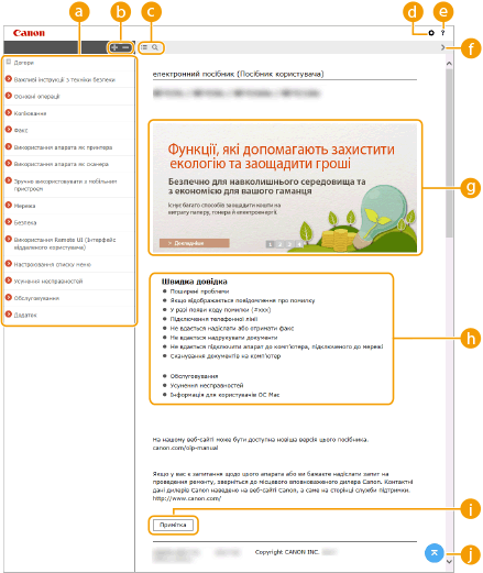 Відображає відомості про те, як переглядати посібник електронний посібник, шукати в ньому інформацію тощо.