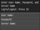 Автентифікація сервера LDAP) ввімкнуто, під час використання функції факсу або сканування відкриється екран для входу в систему авторизованого надсилання.