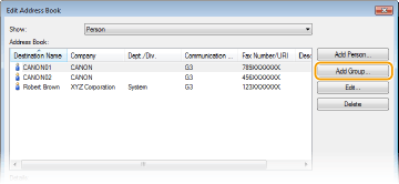 Щоб змінити або видалити зареєстрованих адресатів, виберіть адресата зі списку [Address Book] (Адресна книга) і клацніть [Edit] (Редагувати) або [Delete] (Видалити).