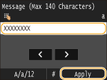 За допомогою цифрових клавіш введіть текст повідомлення та торкніться кнопки <Apply>.