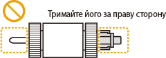 ![]() ![]() Обов’язково тримайте стержень ролика для паперу за правий бік. Не торкайтесь лівої сторони стержня.