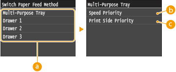Усі параметри роботи шухляди для паперу та способу подавання паперу супроводжуються коротким описом. Параметри за промовчанням мають позначку кинджала (