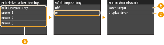 Параметри пріоритетуЯкщо значення параметра друку вказано як у драйвері принтера, так і на панелі керування апарата, то пріоритет має значення драйвера принтера. Значення на панелі керування набуває чинності в особливих випадках, як-от друк PS/PCL або друк в ОС UNIX чи інших операційних системах, у яких не підтримуються драйвери принтерів.