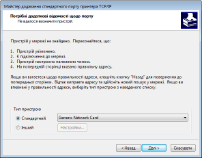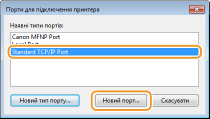 У розділі [Доступні типи портів] виберіть елемент [Standard TCP/IP Port] (Стандартний порт TCP/IP), а потім натисніть кнопку [Новий порт].
