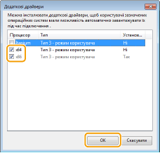 ![]() Відповідно до операційної системи сервера друку, виберіть додаткові драйвери, вказані нижче.