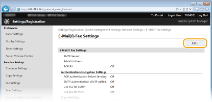 За допомогою Інтерфейсу віддаленого користувача настройте додаткові параметри надсилання та отримання, наприклад параметри надсилання та отримання інтернет-факсів за допомогою апарата, а також параметри для автентифікації та шифрування зв’язку на сервері POP перед надсиланням повідомлень електронної пошти або інтернет-факсів. Для отримання інформації про необхідні параметри зверніться до свого постачальника або адміністратора мережі.