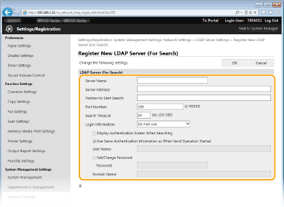 Виберіть елемент [Register New Server] для [LDAP Server (For Search)] або [LDAP Server (For Authentication)].