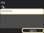 Введіть PIN-код за допомогою цифрових клавіш і торкніться кнопки <Apply>.