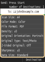 Щоб дізнатися, як зареєструвати комбінацію параметрів, щоб за потреби використовувати їх, див. розділ Реєстрація часто використовуваних параметрів сканування (електронна пошта/інтернет-факс/спільна папка/FTP-сервер)
