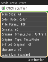 Щоб дізнатися, як зареєструвати комбінацію параметрів, щоб за потреби використовувати їх, див. розділ Реєстрація часто використовуваних параметрів сканування (електронна пошта/інтернет-факс/спільна папка/FTP-сервер)