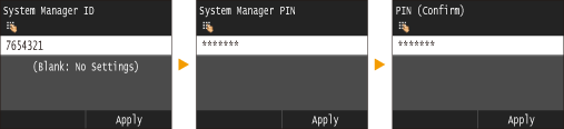 ![]() За промовчанням для ідентифікатора адміністратора системи й PIN-коду встановлено значення «7654321». Рекомендується змінити цей параметр для підвищення безпеки.