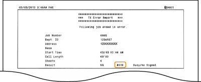 Якщо виникає помилка, як-от не вдалося виконати друк, надіслати або отримати факс чи відсканований документ, відповідний код помилки потрапляє у звіт або виводиться на екран <Job Log> у вигляді тризначного числа. Ознайомтеся з інформацією нижче, щоб дізнатися про причини та способи усунення для кожного коду помилки. Щоб дізнатися, як друкувати звіт про помилки та інформацію у звіті, див. розділ