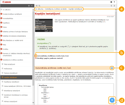 Noklikšķiniet, lai parādītu informāciju par to, kā skatīt e-Rokasgrāmata, kā veikt meklēšanu, kā arī aplūkotu citu informāciju.