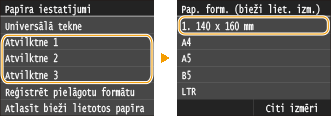 Ja izvēlaties daudzfunkciju papīrturim paredzētu papīra formātu