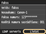 Adresāta laukā ievada LDAP serverī reģistrētā izvēlētā lietotāja lietotājvārdu, faksa numuru vai e-pasta adresi.