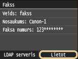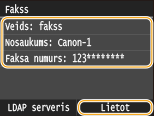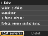 Adresāta laukā ievada LDAP serverī reģistrētā izvēlētā lietotāja lietotājvārdu, faksa numuru vai e-pasta adresi.
